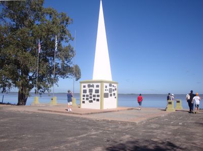 Un obelisco construido en 1863 por Domingo Ordoñana se eleva 6 metros en el punto exacto del desembarco, con una placa de mármol conmemorativa.