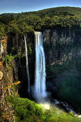 Brasil cuenta con numerosas cascadas y fuentes termales en sus paisajes variados. En Iguaçu, el agua fluye sobre 275 caídas individuales. La región de Chapada Diamantina contiene varias cascadas, incluida la Cachoeira da Fumaça de 380 metros. La Serra da Canastra alberga la cascada Casca d'Anta de 186 metros. Piscinas naturales de aguas claras se encuentran en Poço Azul y Lagoa Azul. Las fuentes termales de Ibirá proporcionan aguas minerales a temperatura constante. Estos lugares se distribuyen por diferentes regiones de Brasil, desde la Serra Gaúcha del sur con la cascada Caracol hasta las mesetas del Jalapão en el norte. Las cascadas varían en altura y volumen. Algunas se precipitan sobre paredes rocosas empinadas, mientras que otras fluyen a través de cañones estrechos. Varios de estos sitios se encuentran en parques nacionales o áreas protegidas.