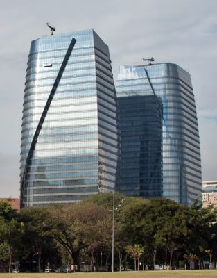 Las torres, finalizadas en la década de 2010, representan la evolución de la arquitectura comercial desde los primeros rascacielos de São Paulo en 1920.