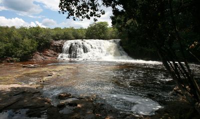 La cascada Iracema se encuentra en Presidente Figueiredo y cae a través de vegetación densa del bosque, formando varios pozos naturales en diferentes niveles. El agua ha erosionado formaciones rocosas que crean una serie de estanques en cascada.