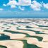 El Parque Nacional Lençóis Maranhenses en la parte oriental alberga extensos campos de dunas que se llenan de agua durante la temporada de lluvias, formando miles de lagunas turquesas entre mayo y septiembre. Estas pozas de agua dulce atraen peces que sobreviven incluso en la época seca enterrándose en la arena hasta que las próximas lluvias vuelven a formar las lagunas.