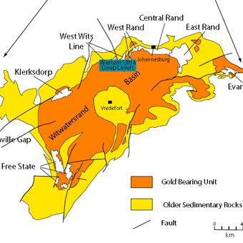 La cuenca de Witwatersrand contiene algunos de los depósitos de oro más antiguos de la Tierra, ubicados a cientos de metros bajo la superficie. Esta profundidad hizo que las operaciones mineras fueran particularmente desafiantes e impulsó la innovación tecnológica.