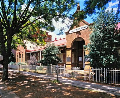 El antiguo edificio escolar alberga los servicios bibliotecarios del Departamento de Educación de Transvaal, proporcionando recursos educativos a la comunidad local.