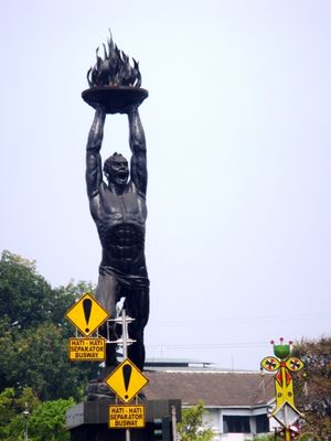 La estatua simboliza el papel de la juventud indonesia en la construcción nacional, con su figura musculosa y la llama representando el progreso.