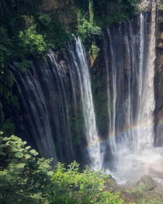 Las cataratas Tumpak Sewu forman un semicírculo de cascadas que caen 120 metros desde los acantilados, creando múltiples corrientes de agua que fluyen hacia el cañón.