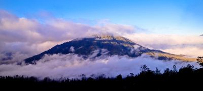 El Monte Raung se eleva 3.332 metros sobre el nivel del mar, con una caldera de 2 kilómetros de ancho y 500 metros de profundidad.