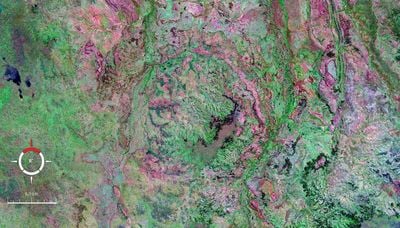 La formación geológica circular abarca 16 kilómetros de diámetro y contiene elementos característicos como conos de impacto y cuarzo deformado.
