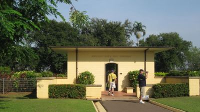 El sitio tiene un cementerio civil adyacente donde 63 civiles estan enterrados, incluyendo nueve trabajadores de Correos que fueron asesinados en el primer ataque aereo japones en la region. Estas tumbas recuerdan a los visitantes que el impacto de la guerra se extendio mucho mas alla del personal militar.