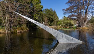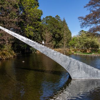 Diminish and Ascend, Escultura de aluminio en Lago Kiosk, Jardines Botánicos de Christchurch, Nueva Zelanda