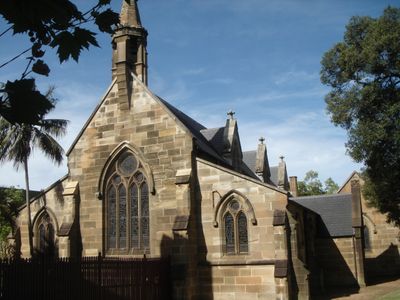 Edmund Blacket diseñó esta iglesia anglicana en 1854, seguida de modificaciones en 1917 cuando el arquitecto John Burcham Clamp reconstruyó el presbiterio y añadió sacristías.