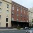 El edificio de ladrillo de cuatro pisos en Vernon Terrace presenta ventanas arqueadas, un parapeto destacado y secciones decorativas rojas en la fachada.