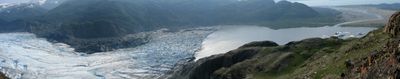 Tustumena Glacier, Glaciar de montaña en la Península de Kenai, Alaska.