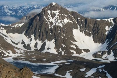 South Yuyanq' Ch'ex se eleva 1.526 metros sobre el nivel del mar, con una forma piramidal que destaca en el paisaje de Alaska.