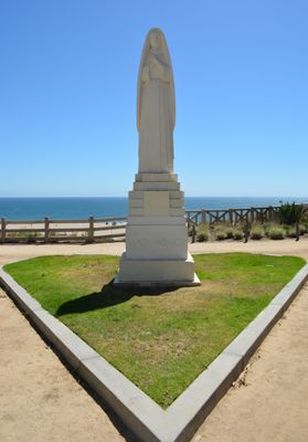 La estatua de Santa Monica se encuentra cerca del paseo marítimo, presentando una figura de piedra que representa la identidad de esta ciudad costera californiana.