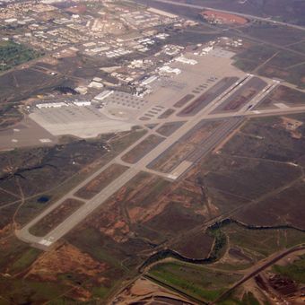 Marine Corps Air Station Miramar es una base aérea militar en San Diego, Estados Unidos, que abarca más de noventa mil acres divididos por la Interestatal 15 en un área operativa occidental y un campo de entrenamiento oriental. Mitscher Field sirve como pista principal para los aviones de combate tácticos de la Marina, mientras que amplias áreas abiertas en la porción oriental apoyan ejercicios terrestres y entrenamiento táctico.