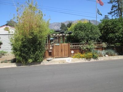 El Keyes Bungalow presenta un tejado poco profundo que se extiende como alas, ejemplificando el estilo arquitectónico California Bungalow-American Craftsman en su propiedad de 0.3 acres.