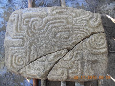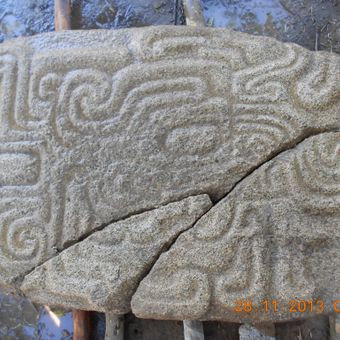 El sitio presenta numerosos monumentos de piedra, incluyendo el Altar 1 que muestra una cara zoomorfa similar a una tortuga junto a tres rostros antropomorfos.
