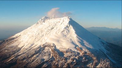 El Nevado del Huila es un estratovolcán activo en los Andes colombianos que alcanza los 5364 metros de altura, lo que lo convierte en el tercer pico volcánico más alto del país. Sus laderas están cubiertas de extensos campos glaciares que permanecen visibles todo el año y le dan a la montaña su característico aspecto blanco.