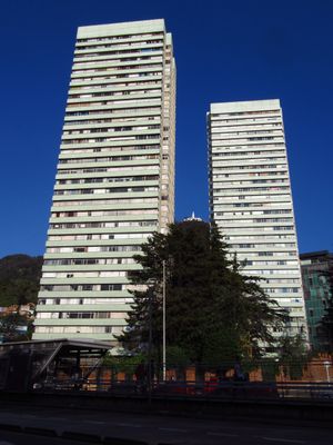 Ubicadas cerca del cerro de Monserrate y el centro fundacional, las torres representan la adaptación del estilo arquitectónico internacional en Colombia.