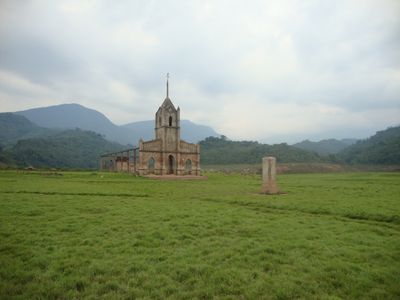 La estructura de la iglesia mantuvo su posición pese a los intentos iniciales de demolición en 1984, marcando el nivel del agua con su arquitectura parcialmente sumergida.