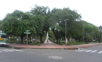 El parque se extiende entre las calles 12 y 13 y las avenidas 2 y 3, con senderos peatonales, jardines y un monumento central dedicado a héroes independentistas.