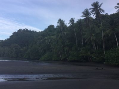 El santuario de 26 hectáreas se extiende junto a una playa remota cerca del Golfo Dulce, rodeado por el Parque Nacional Piedras Blancas.