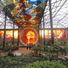 El techo presenta numerosos elementos de vidrio coloreado que fueron diseñados específicamente para el uso botánico cuando abrió como jardín. Esta obra de vidrio crea una experiencia de luz especial que cambia a lo largo del día.