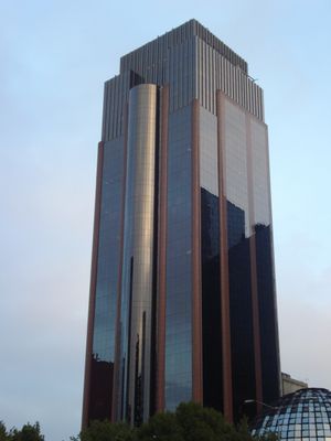 El edificio de 28 pisos, construido en vidrio y aluminio, alcanza una altura de 128 metros en el distrito financiero de Ciudad de México.