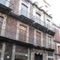 El edificio de tres pisos presenta una fachada simétrica construida con piedra tezontle roja y marcos de chiluca gris en República de Uruguay 94.