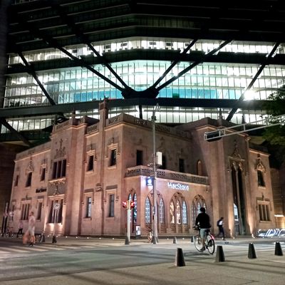 La construcción comenzó en 2008 en el sitio de una antigua discoteca, incorporando una casa protegida de 1929 en el diseño del vestíbulo principal.