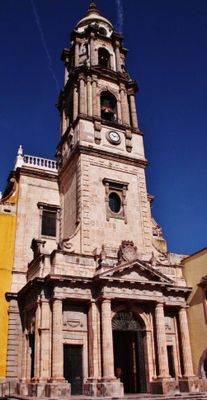La ciudad se extiende por tierras planas a 1.767 metros de altura, con múltiples edificios históricos y campos agrícolas junto al río Laja.