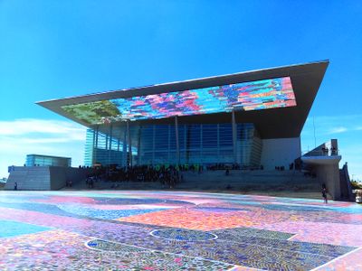 El recinto alberga numerosas presentaciones incluyendo conciertos, obras teatrales, espectáculos de comedia y eventos culturales dentro del Parque Cultural David Ben Gurión.