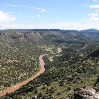 El Rio Grande se extiende más de 3050 kilómetros desde las Montañas Rocosas en Colorado a través de terrenos desérticos hasta el Golfo de México. El lecho del río forma un límite natural entre dos países a lo largo de gran parte de su recorrido, atravesando paisajes muy diferentes desde zonas montañosas hasta llanuras costeras bajas.