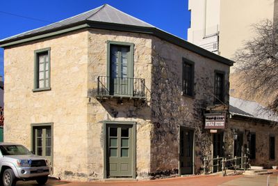 La Casa Otto Bombach es un edificio de piedra caliza histórico en La Villita que presenta características arquitectónicas de los asentamientos germano-estadounidenses del siglo 19. La estructura de piedra maciza muestra aberturas de ventanas típicas y proporciones comunes en casas residenciales de esa época.