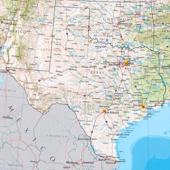El centro geográfico del estado se encuentra al noreste de la pequeña ciudad de Brady, mientras que la ciudad más occidental está más cerca de California que de la frontera este. Esta extensión explica por qué se puede recorrer en un día varios paisajes completamente diferentes, desde tierras costeras llanas hasta colinas rocosas.