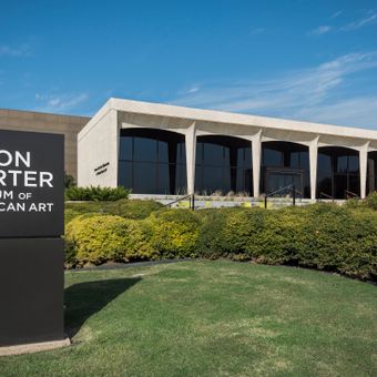 El Museo Amon Carter presenta una extensa colección de arte estadounidense distribuida en múltiples salas dentro de un edificio modernista con fachada de vidrio.