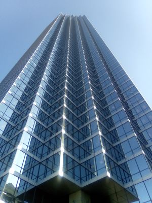 La Plaza Bank of America es una estructura de vidrio de 281 metros de altura con 74 pisos y forma triangular. El edificio es la estructura más alta de Dallas y domina la silueta urbana.