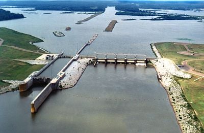 La esclusa y presa John C. Stennis regula los niveles de agua y permite la navegación de grandes embarcaciones por la vía fluvial Tennessee-Tombigbee.