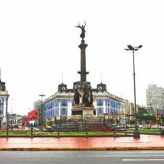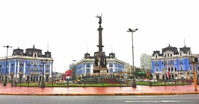 Plaza Dos de Mayo, Plaza pública en Centro Histórico, Lima, Perú.