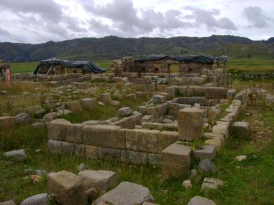El complejo contiene 4000 estructuras de piedra organizadas en 8 sectores con una plaza central de 550 por 350 metros a 3650 metros de altura.
