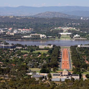Canberra es una capital federal planificada en el Territorio de la Capital Australiana, que sirve como centro administrativo de Australia entre Sídney y Melbourne. La ciudad se extiende alrededor del lago artificial Burley Griffin, con amplios bulevares que irradian simétricamente desde los edificios gubernamentales centrales en Capital Hill y conectan zonas verdes con instituciones públicas.