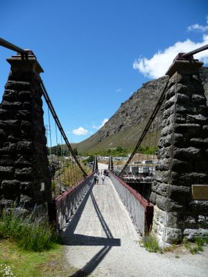 Kawarau Gorge Suspension Bridge, Puente colgante histórico en la Región de Otago, Nueva Zelanda.