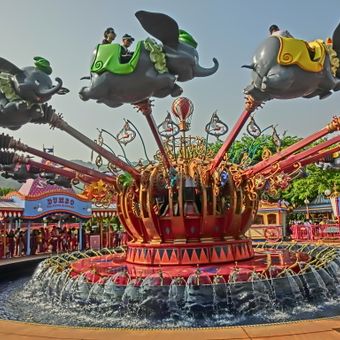 Dumbo the Flying Elephant, Atracción de carrusel aéreo en Hong Kong Disneyland, China.