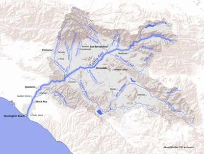 El Cañón Railroad se extiende por 11 kilómetros a través de las Montañas Temescal, con formaciones rocosas escarpadas y un tramo sinuoso del Río San Jacinto.