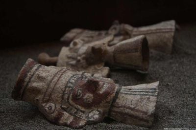 Los muros pintados muestran símbolos del mundo azteca como cráneos y corazones, revelando qué era sagrado para la gente que vivía aquí. Al caminar entre los restos, se nota cómo el arte y la religión moldeaban la vida diaria.