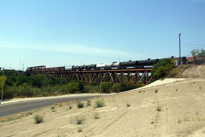 El Puente Internacional del Ferrocarril Mexicano de Texas se extiende 389 metros sobre el Río Grande, conectando las redes ferroviarias de México y Estados Unidos.