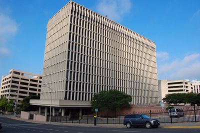 El Edificio Federal J.J. Pickle se extiende por once pisos con estructura de hormigón y elementos de granito pulido entre Boulevard San Jacinto y Calle Trinity.