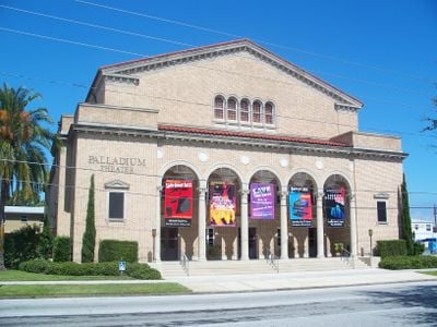 El Palladium en St. Petersburg College se encuentra en 253 Fifth Avenue North, exhibiendo arquitectura neorrománica con elementos de estructura basilical.