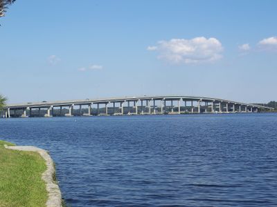 El primer puente en esta ubicación fue construido en 1888 por la Compañía de Puentes Palatka, mientras que la estructura actual de hormigón abrió al tráfico en 1976.