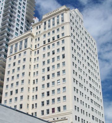 Construido en 1923 con cinco pisos, el edificio recibió dieciséis plantas adicionales en 1926 durante el período de rápido desarrollo de Miami.